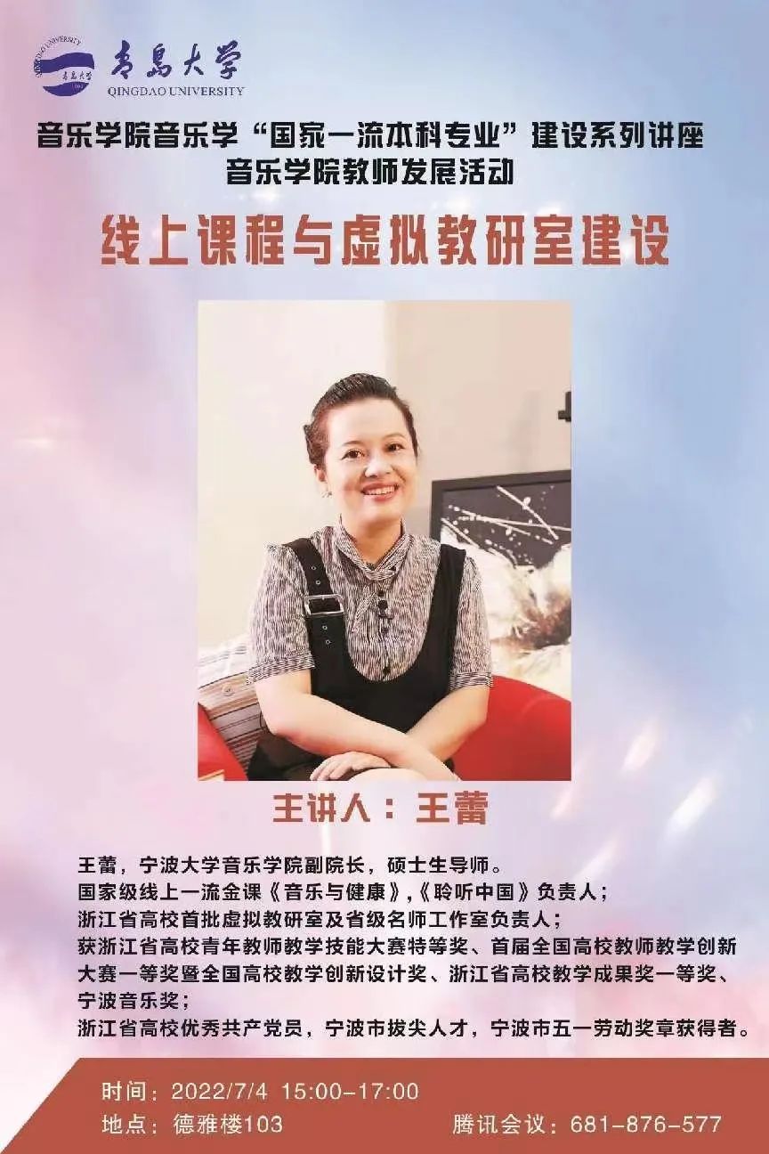 音乐学院夏季学期高端学术报告(八):暨教师发展活动 | 线上课程与虚拟教研室建设